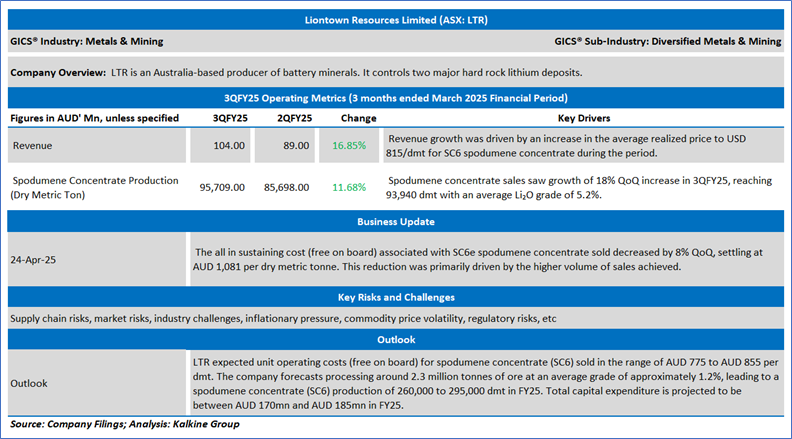 The stock has witnessed a dip of ~23.70% in the last 3 months, and over the past nine months, it has decreased by ~44.32%. The stock has a 52-week low and 52-week high of AUD 0.420 and AUD 1.535, respectively, and is currently trading below the 52-week high-low average. LTR was last covered in a report dated ‘11 April 2025’.