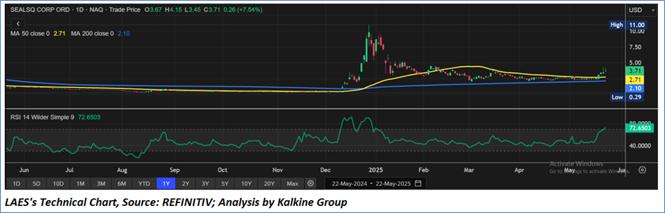 Sealsq Corp (NASDAQ: LAES) is a Switzerland based holding company operating primarily in the semiconductor industry. The Company focuses on developing and selling tamper resistant semiconductors, chips, processors and post-Quantum technology products. The Company also develops certified secure microcontrollers and implements post-quantum cryptography also secure hardware, firmware, and provides other services for customers across multiple industries.