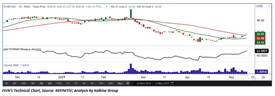 Five9, Inc. (NASDAQ: FIVN) is a provider of cloud software for contact centers. The Company's purpose-built Virtual Contact Center (VCC) cloud platform delivers a suite of applications that enable the breadth of contact center-related customer service, sales, and marketing functions. As per our previous US Dailies report published on ‘FIVN’ on 21st Feb 2025, Kalkine provided an ‘Buy’ stance on the stock at USD 41.69 based on fundamental analysis and the stock price has now moved down by ~32.72%.