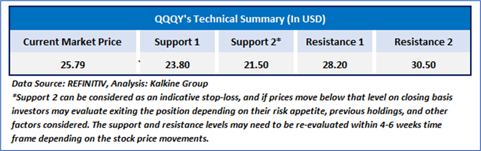 Note 4: ‘Kalkine reports are prepared based on the prices captured either from the New York Stock Exchange (NYSE), NASDAQ Capital Markets (NASDAQ), and or REFINITIV. Typically, all sources (NYSE, NASDAQ, or REFINITIV) may reflect stock prices with a delay which could be a lag of 15-20 minutes. There can be no assurance that future results or events will be consistent with the information provided in the report. The information is subject to change without any prior notice.