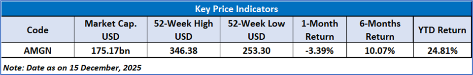 Amgen Inc (NASDAQ: AMGN) is a biotechnology company engaged in the discovery, development, manufacturing, and commercialization of therapies for serious and complex diseases. The company concentrates on areas with significant unmet medical needs, applying its scientific expertise to develop treatments aimed at improving patient outcomes. Its operations are conducted primarily within the human therapeutics segment.