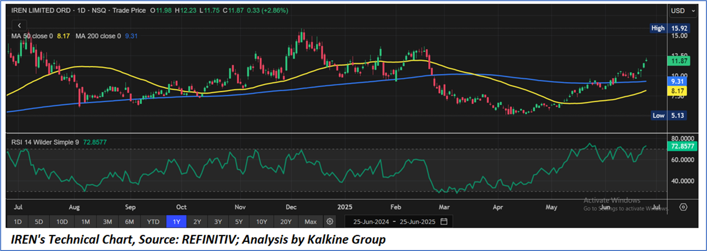 As per the above-mentioned price action, recent key business and financial updates, momentum in the stock over the last month, and technical indicators analysis, a ‘WATCH’ rating has been given IREN Limited (NASDAQ: IREN) at the closing price of USD11.87, as of June 25, 2025.