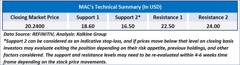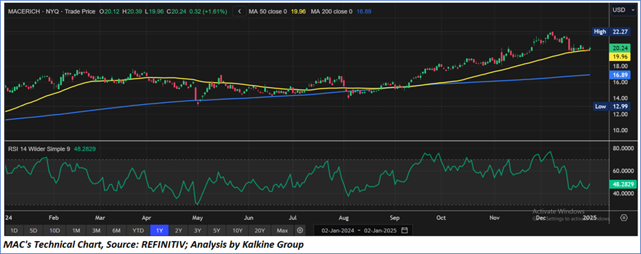 As per the above-mentioned price action, recent key business and financial updates, momentum in the stock over the last month, and technical indicators analysis, a ‘Watch’ rating has been given for The Macerich Company (NYSE: MAC) at the closing market price of USD20.24, as of January 02, 2025.
