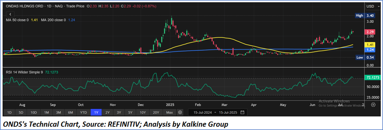 As per the above-mentioned price action, recent key business and financial updates, momentum in the stock over the last month, and technical indicators analysis, a ‘WATCH’ rating has been given to Ondas Holdings Inc. (NASDAQ: ONDS) at the current market price of USD 2.29, as of July 15, 2025, at 09:20 am PDT.