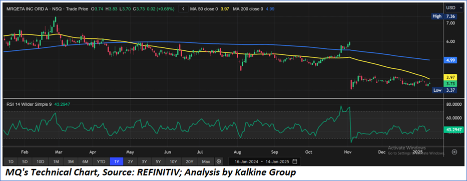 As per the above-mentioned price action, recent key business and financial updates, momentum in the stock over the last month, and technical indicators analysis, a ‘Watch’ rating has been given for Marqeta, Inc. (NASDAQ: MQ) at the current market price of USD 3.73, as on January 14, 2025, at 09:20 am PST.