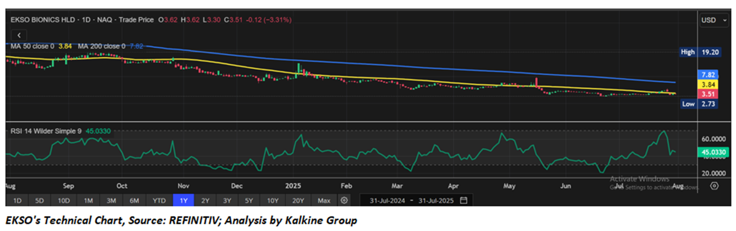 As per the above-mentioned price action, recent key business and financial updates, momentum in the stock over the last month, and technical indicators analysis, a ‘Watch’ rating has been given to Ekso Bionics Holdings Inc (NASDAQ: EKSO) at the current market price of USD 3.51 as of July 31,2025 at 9:40 am PDT.