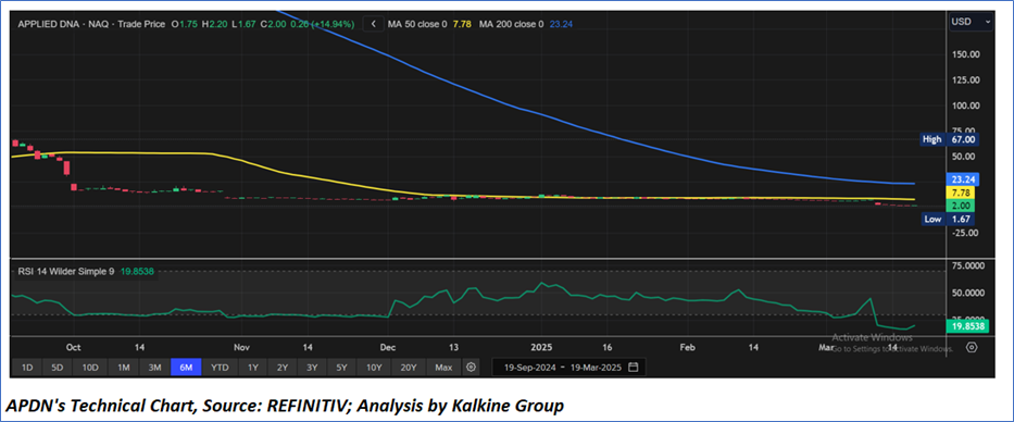 • Strategic Restructuring and Corporate Developments: In December 2024, Applied DNA initiated a strategic restructuring, culminating in the announced exit from its DNA Tagging business segment in early 2025, while continuing to service select existing customer contracts. This restructuring involved a workforce reduction of 20%, primarily affecting the DNA Tagging segment, expected to reduce annual payroll costs by 13%, though offset by one-time separation costs of USD 300,000 to be recorded in the quarter ending March 31, 2025. Dr. James A. Hayward, Chairman and CEO, emphasized that these measures are critical to lowering the company’s cash burn rate and stabilizing its financial position to support near-term operational goals.