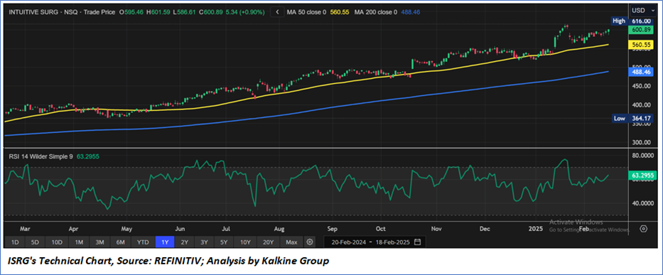 As per the above-mentioned price action, recent key business and financial updates, momentum in the stock over the last month, and technical indicators analysis, a ‘WATCH`’ rating has been given for Intuitive Surgical, Inc. (NASDAQ: ISRG) at the closing price of USD 600.89, as of February 18, 2025.