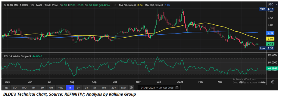 As per the above-mentioned price action, recent key business and financial updates, momentum in the stock over the last month, and technical indicators analysis, a ‘WATCH’ rating has been given Blade Air Mobility, Inc. (NASDAQ: BLDE) at the closing price of USD2.68, as of April 24, 2025.
