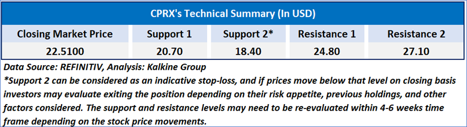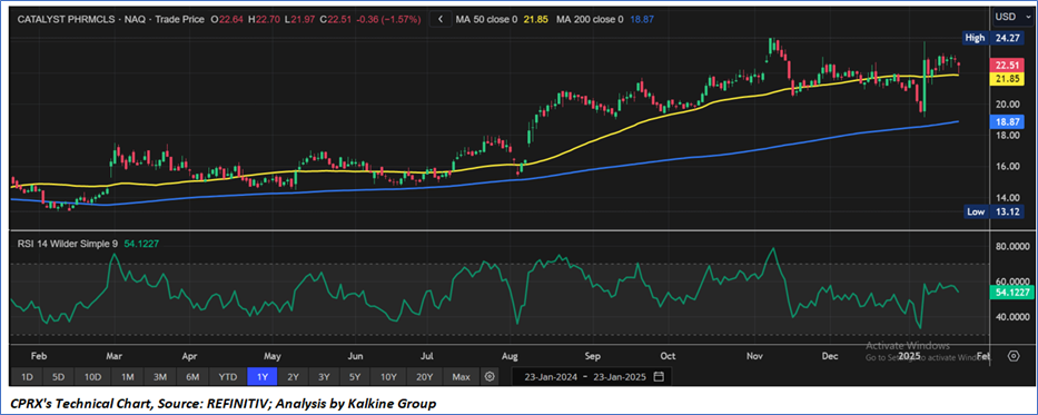 As per the above-mentioned price action, recent key business and financial updates, momentum in the stock over the last month, and technical indicators analysis, a ‘Watch’ rating has been given for Catalyst Pharmaceuticals, Inc. (NASDAQ: CPRX) at the closing price of USD 22.51, as of January 23, 2025.
