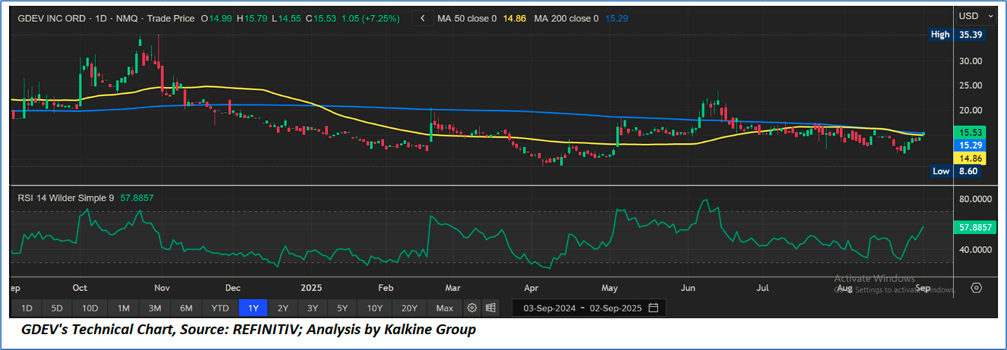 As per the above-mentioned price action, important resistance near USD 16.00-USD17.00, momentum in the stock over the last month, and technical indicators analysis, a ‘WATCH’ rating has been given for GDEV Inc (NASDAQ: GDEV) at the closing price of USD 15.53, as of September 02, 2025.