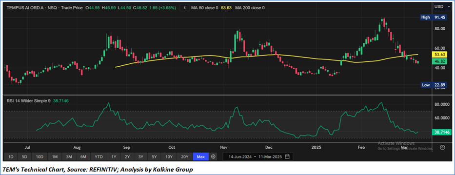 As per the above-mentioned price action, recent key business and financial updates, momentum in the stock over the last month, and technical indicators analysis, a ‘Watch’ rating has been given to Tempus AI, Inc. (NASDAQ: TEM) at the current price of USD 46.82, as of March 11, 2025, at 06:40 am PDT.
