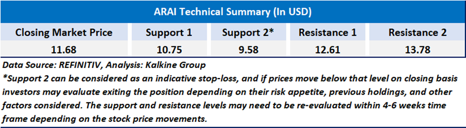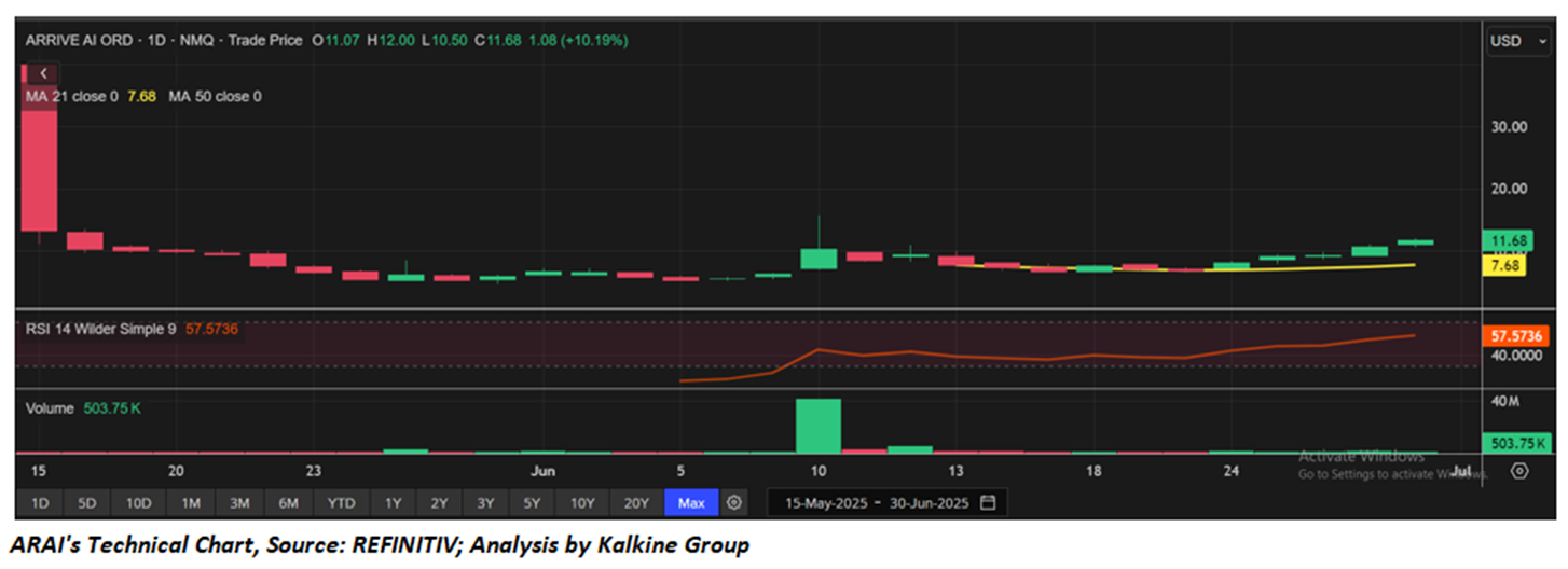 As per the above-mentioned price action, recent key business and financial updates, momentum in the stock over the last month, and technical indicators analysis, a ‘Watch’ rating has been given to Arrive AI Inc (NASDAQ: ARAI) at the closing market price of USD 11.68 as of June 30,2025.