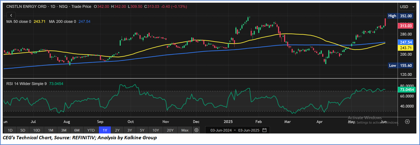 As per the above-mentioned price action, recent key business and financial updates, momentum in the stock over the last month, and technical indicators analysis, a ‘WATCH’ rating has been given Constellation Energy Corporation (NASDAQ: CEG) at the closing price of USD313.03, as of June 03, 2025.