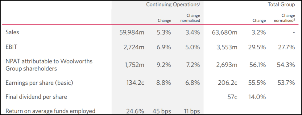 During FY19, NPAT attributable to Woolworths Group shareholders went up by 9.2% and stood at $1,752 million. As a consequence of which EPS increased by 8.8% to 134.2 cents per share. The decent financial performance enabled the Board to pay dividends of 57 cents, up by 14% on the previous year..png)