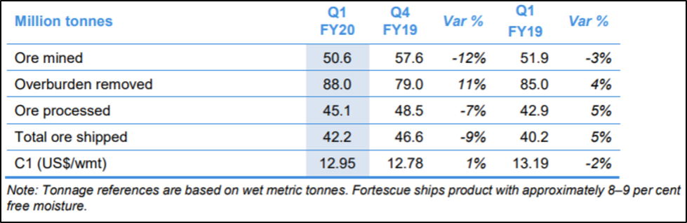 Strong Start to FY20: Fortescue Metals Group Ltd (ASX: FMG) is engaged in mining, processing and transporting of iron ore for export from the Company's deposits within the Pilbara region of Western Australia. The company has recently released its September 2019 quarterly production results, wherein it reported shipments of 42.2 million tonnes and average revenue of US$85 per dry metric tonne. The operational performance and realised price have generated exceptional operating cashflows and lowered net debt to US$0.5 billion at 30 September 2019..png)