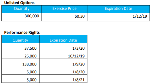 On December 6, 2019, the company informed the market about the expiry of its unlisted options and cancellation of performance rights.