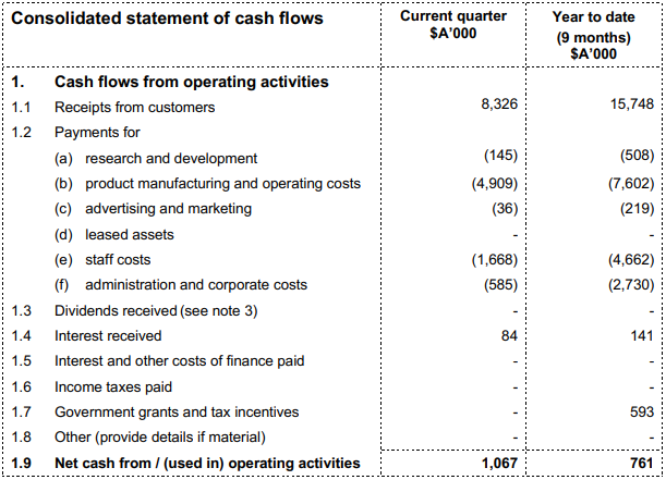 Unaudited Financial Results for Q3FY19: During the quarter ended 30 September 2019, the company reported an operating cashflow amounting to $1.067 Mn. Cash receipts during the period stood at $8.326 Mn, representing a quarter-on-quarter increase of 38.5% as compared to receipts amounting to $6.01 Mn in the previous quarter. Revenue for the quarter amounted to $8.58 Mn, representing an increase of 36% as compared to the previous quarter revenue of $6.3 Mn. Third-quarter revenue was also higher than the total revenue of $8.173 Mn during the first half.